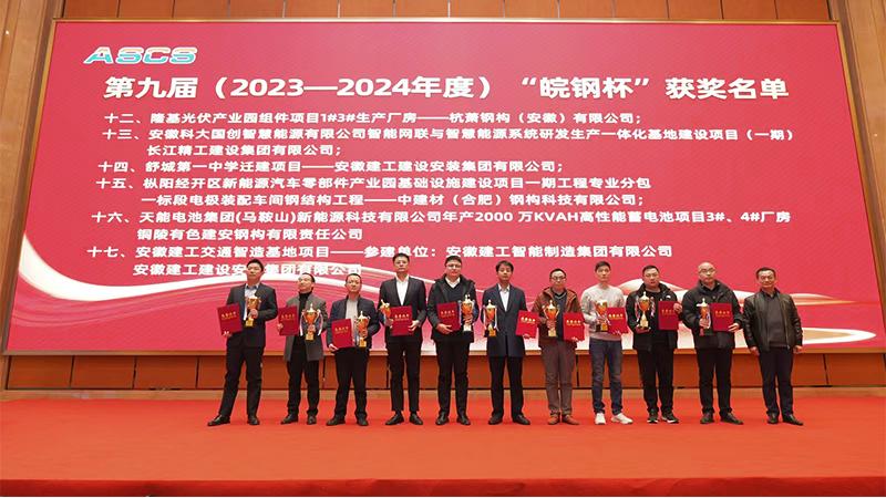 同時(shí),會(huì)議對(duì)獲得安徽省鋼結(jié)構(gòu)行業(yè)2023-2024年度皖鋼杯優(yōu)質(zhì)工程獎(jiǎng)的獲獎(jiǎng)項(xiàng)目進(jìn)行頒獎(jiǎng),“瑤海鋼構(gòu)”報(bào)送的“合肥恒鑫生活科技股份有限公司年產(chǎn)3萬噸PLA可堆肥綠色環(huán)保生物制品項(xiàng)目5#、7#倉庫鋼結(jié)構(gòu)”名列其中。可喜可賀!