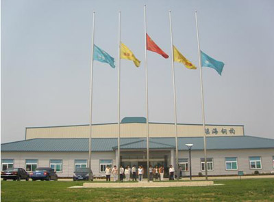 為表達對四川汶川大地震遇難同胞的深切哀悼,瑤海鋼構公司在2008年5月19日至21日全國哀悼日期間降半旗致哀。并于5月19日14時28分,全體行政員工停止手頭的所有工作,在國旗下向四川汶川大地震遇難的同胞默哀3分鐘。