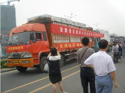 2008年5月23日下午 14:00,安徽省支援四川災區建設安置房出征儀式在徽州大道隆重舉行,省政府和省建設廳相關領導蒞臨現場為出征男兒壯行。
