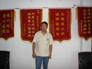 李玉山——我公司機修班電工,當我們公司承建的三所小學,一所大專院校進入最后攻堅階段時,李玉山同志臨危受命,在關鍵時刻被派往援建現(xiàn)場,負責援建校舍 的電路安裝工作。在校舍的后期安裝中,李玉山同志承擔了整個校舍的電路安裝、檢修工作,在極短的時間內(nèi),完成了所有的線路安裝配套工作,確保了每一間教室 用電需求,為6月22日,學校的順利復課做出了重要貢獻。