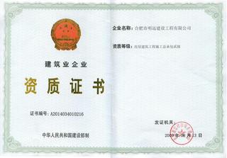瑤海鋼構集團公司下屬子公司——合肥市明遠公司于2009年7月份成功取得“房屋建筑工程施工總承包二級資質”,明遠公司二級資質取得,為下一步發展打下了堅實的基礎。