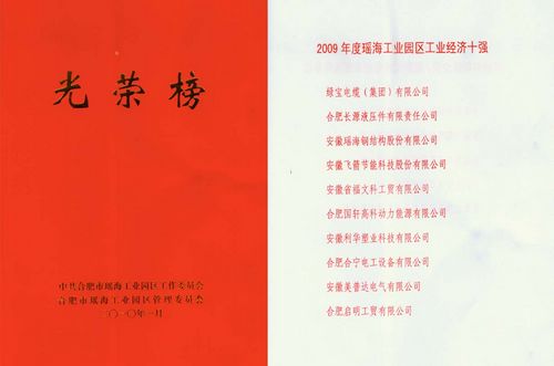 2010年1月中共合肥市瑤海工業園區工作委員會、合肥市瑤海工業園區管理委員會授予瑤海鋼構集團“2009年度瑤海工業園區工業經濟十強”榮譽稱號。