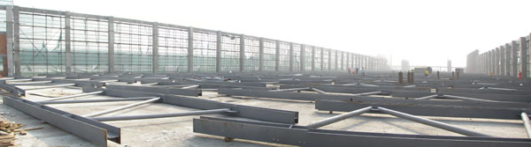 日前,彩虹(合肥)光伏三廠二標段工程進展順利,等待吊裝。該項目由安徽瑤海鋼結構股份有限公司承接、生產部副總經理汪文友負責。經過生產、加工,焊接,運輸等復雜過程,目前該工程等待吊裝。該工程兩邊立柱高達24米,東西跨度高達60米,且中間無柱體支撐,鋼結構全部采用管桁架制作,工藝復雜,運輸難度大,吊裝更是難上加難,必須用260噸履帶吊方能完成,這在我公司承接的工程中是絕無僅有的。這一工程的成功承接標志著我公司在工程技術方面又邁向了一個新的臺階。另獲悉,彩虹(合肥)光伏項目,總投資18.5億,建設兩座日熔化能力500噸的玻璃熔窖,配套12條125T/D壓延玻璃生產線和相應產能的玻璃鍍膜、鋼化生產線。項目建設期一年,建成后可年產3.2毫米厚度的光伏玻璃原片3034萬平方米,加工形成鋼化和鍍膜光伏玻璃2821.7萬平方米,年產值超過14億元.