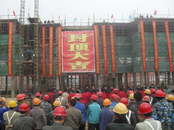 本報訊:2011年11月1日,滁州夏子工程現場,彩旗飄飄,爆竹聲聲,整個工地現場洋溢著喜慶的氣氛。由安徽瑤海鋼構集團明遠建設公司總承包,安徽瑤海鋼構分包的滁州夏子包裝有限公司今日迎來順利封頂的大喜之日,滁州市瑯琊區人大常委會主任楊柳、瑯琊經濟開發區管委會副主任吳斌,揚子街道黨工委書記王毓松及安徽瑤海鋼構副總經理夏源、銷售公司總經理周志偉及明遠建設公司總經理王昌俊應邀參加了此次的封頂儀式,并發表了熱情洋溢的講話。滁州夏子綠色包裝工程是由我公司銷售員袁秋林成功簽約的一工程,該工程建筑面積約42000平方米,屬單體鋼結構。該項目成功簽約后,我公司主要領導多次走訪該工程,了解工程進展情況,全力推進工程建設,力保工程如期按質完成。在明遠建設及瑤海鋼構的全體人員的共同努力下,經過104天的緊張施工,順利完成主樓封頂。預計,11月8日鋼結構主體驗收,年底交付業主使用。