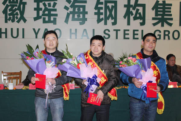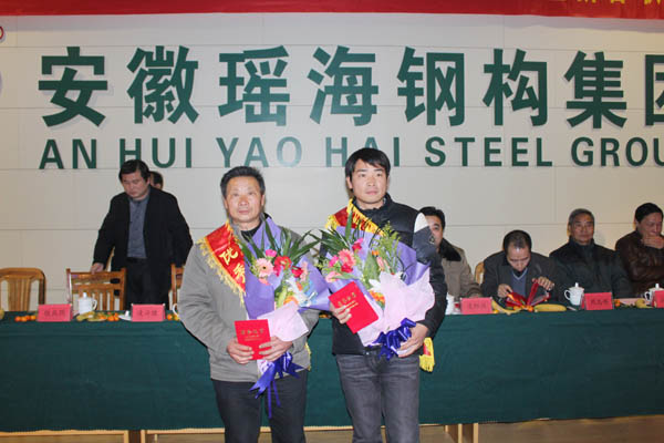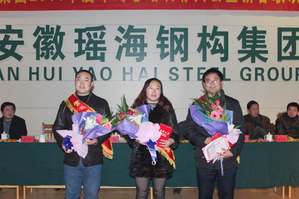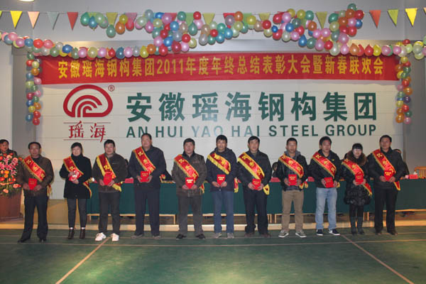 本報訊:1月15日下午,安徽瑤海鋼構(gòu)多功能廳內(nèi),一面面獎狀、一本本厚厚的榮譽(yù)證書、一臺臺嶄新的家用電器、一排排身披彩帶的優(yōu)秀員工,一串串彩色的氣球,和著《今天是個好日子》歡快的樂曲,將瑤海鋼構(gòu)多功能廳裝扮的格外喜慶,這里正在舉行瑤海鋼構(gòu)2011年度總結(jié)表彰大會及新春聯(lián)歡會。