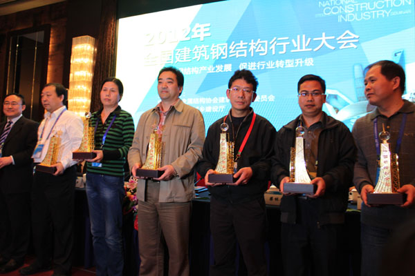 2012年4月13日上午9時,由中國建筑金屬結構協會、浙江省住房和城鄉建設廳主辦的2012年全國建筑鋼結構行業大會在水鄉紹興隆重開幕,浙江省市相關領導應邀出席本次會議,安徽瑤海鋼結構股份有限公司應邀前往并領取“京滬高速鐵路蚌埠南站站臺雨棚鋼結構工程”鋼結構金獎獎杯和獎牌。
