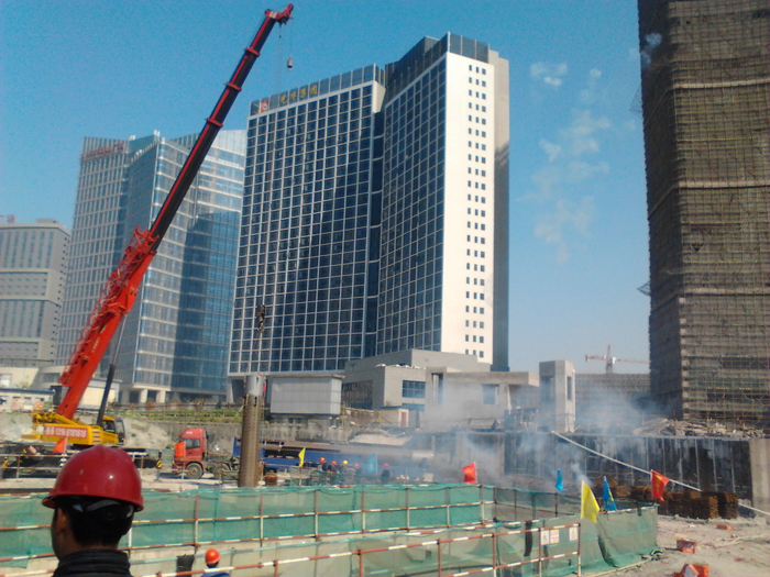 2014年3月22日,伴隨著數(shù)聲禮炮響起,由瑤海鋼構(gòu)承建的中宇國際大廈52層鋼結(jié)構(gòu)工程首根鋼柱正式開始吊裝,巨大的履帶吊車將重達數(shù)噸的巨型鋼柱緩緩拉升。十多分鐘后,在現(xiàn)場人員的指揮下,鋼柱穩(wěn)穩(wěn)落地,精準放入指定位置,中宇國際大廈首根鋼柱吊裝工作圓滿成功。