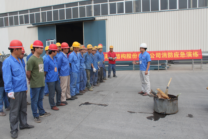 2014年6月14日上午,在輕鋼廠北貨場進行了一場以“強化紅線意識,促進安全發展”為主題的消防應急演練活動。生產系統各廠負責人及其他相關部門負責人應邀參加了此次的消防演練。為進行這次演練活動,公司成立了以生產副總王林為指揮長的消防應急演練領導小組,確立了“安全第一,確保有序;責任明確,落實細節”的演練原則。演練現場,安全員邵靜現場演示使用滅火器滅火的操作要領:在使用前要將瓶體顛倒幾次,使筒內干粉松動,然后除掉鉛封拔掉保險銷,左手握著噴管右手提著壓把,在距火焰兩米的地方,右手用力壓下壓把,左手拿著噴管左右搖擺,噴射干粉覆蓋燃燒區,直至把火全部撲滅。應急演練準備工作做好后,隨著演練火災區的火焰越來越猛,參加演練人員各就各位,進行撲火。整個演練歷時1分50秒,做到快速、安全、有序,活動圓滿完成。此次消防演練活動增強了員工的消防安全意識,對普及消防安全知識和最大限度地保護員工生命和財產起著重要的促進作用。