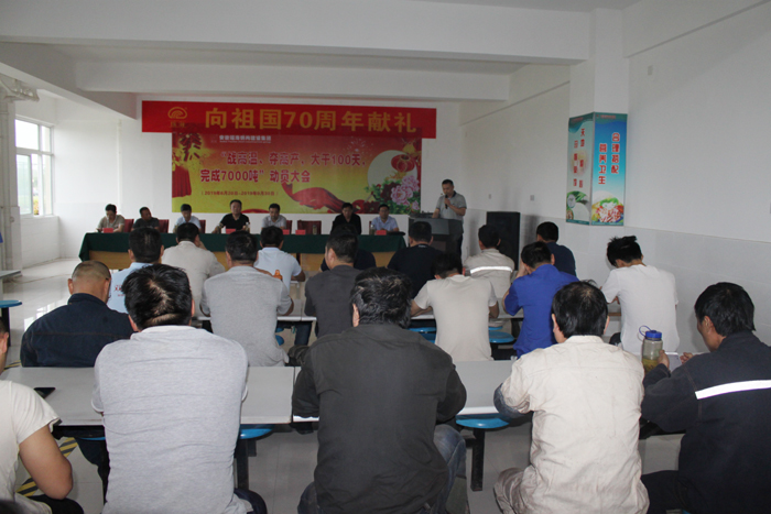 按照議程,總經理方志首先作總動員,方總指出:接下來的100天是今年整體目標能否實現的關鍵時期。時間不等人,我們已經沒有功夫猶豫沒有時間討論、沒有精力爭論、沒有退路可選,已經到了決戰的時刻。今天既是動員大會也是決戰誓師大會,全體參戰人員要抖擻精神,堅定信念,燃燒激情,大干一百天,全力推進高產量目標,向完成全年生產目標發起新一輪的沖刺。隨后方總強調:在組織生產大干的同時,要切記注意安全,加強安全管理。一定要嚴格落實安全制度,采取有效手段,嚴格安全管理。