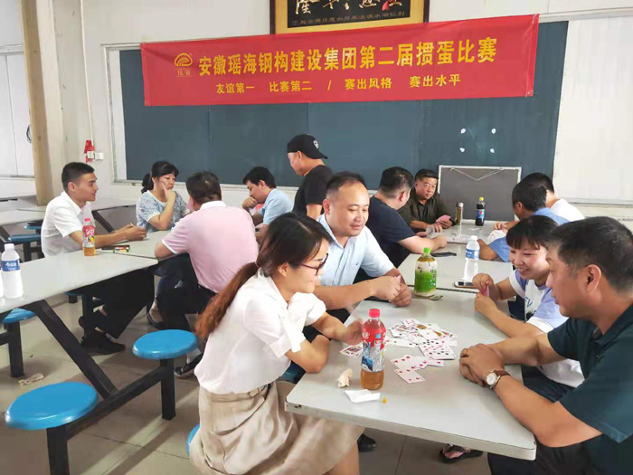 為豐富廣大職工業余文化生活,喜迎中秋國慶佳節,2019年9月9日下午13點,安徽瑤海鋼構建設集團在公司食堂舉辦了第二屆職工撲克牌“摜蛋”比賽。本次比賽為“摜蛋”愛好者提供了一次難得的交流機會,一來豐富了員工的業余生活,二來也可通過比賽促進各部門和員工間的情感交流。