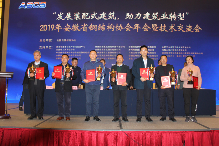 隨后進行頒獎,表彰為協會作出貢獻的先進個人,突出貢獻者,同時頒發“皖鋼杯”優質工程獎。安徽瑤海鋼構建設集團股份有限公司承建的合肥乾龍現代物流園一期10#、11#城市配送中心設計采購施工總承包(EPC)項目鋼結構工程,通過為期一個月專家公平、公正的評選和現場的實地考察,從眾多的工程中突穎而出獲得皖鋼杯優質工程獎稱號。同時,總經理方志榮獲鋼結構行業先進個人稱號。