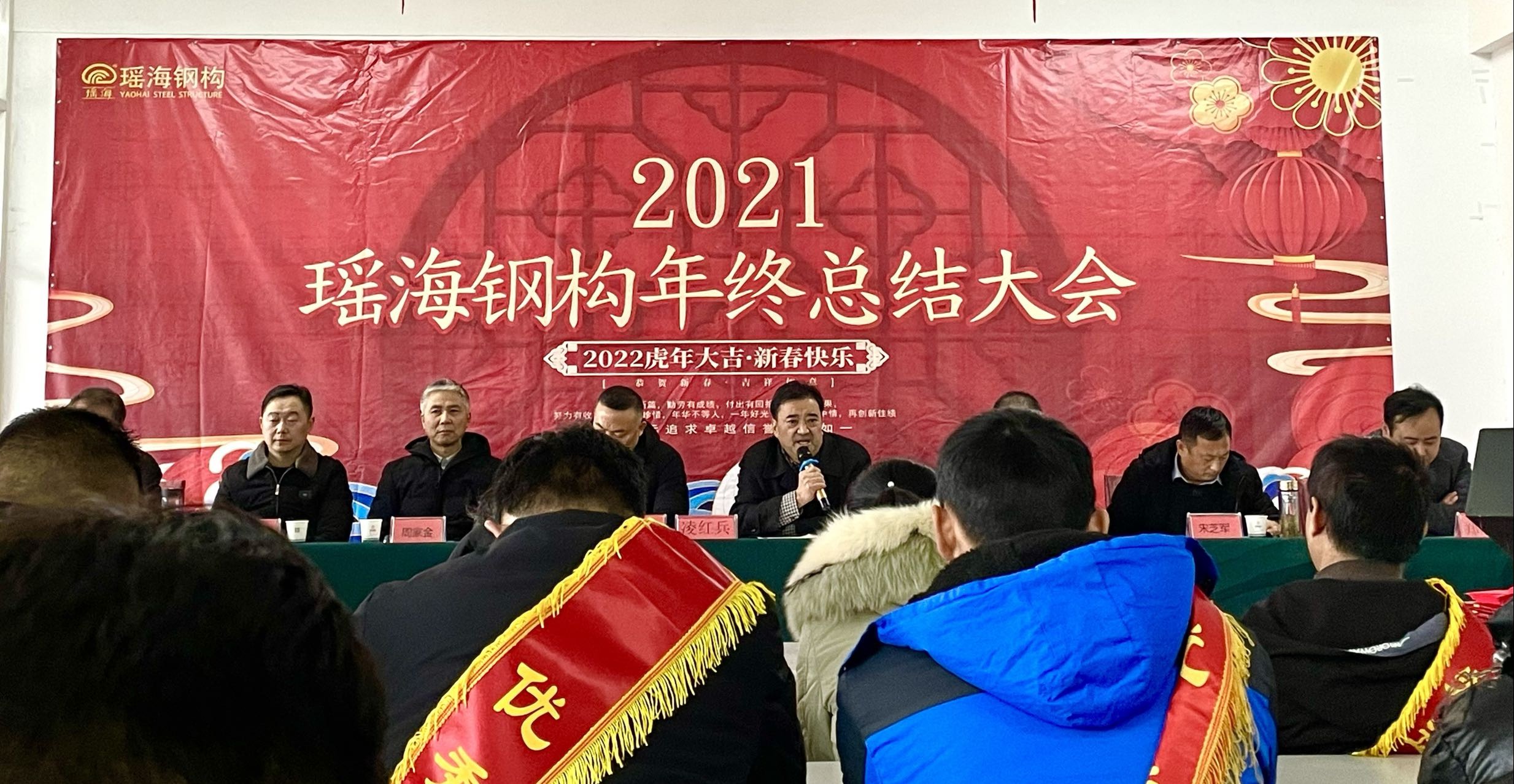 2022年1月26日下午2點,2021年瑤海鋼構年終總結大會在新橋生產基地召開。集團董事長凌紅兵及安徽瑤海鋼構建設集團全體領導班子參加會議并對瑤海鋼構年度工作做出了總結和復盤,此次會議集團公司及生產基地全體職工全員參與。會議上瑤海鋼構集團鋼構事業部、房建事業部、新能源事業部三大事業部部門負責人對全年工作進行了總結和匯報。在2021年經濟下行的形式下,瑤海鋼構依然逆勢上揚完成了全年工作目標,工程項目穩步推進,企業找準方向深化轉型,向過去的一年交出了合格的答卷。會議上凌紅兵董事長就集團2021年度管控及經營管理目標作了重要指示,全面部署了集團2022年各項工作任務并對各業務板塊提出了具體的工作要求。針對當前集團存在的問題對全體員工提出了新的希望和要求,我們面臨企業轉型的關鍵時期,希望全體員工同心同德、勇往直前,共同托起瑤海鋼構更加美好的明天。