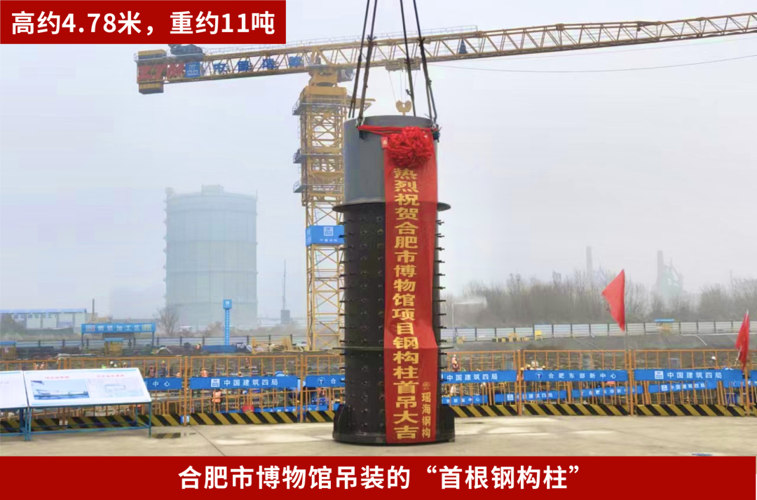 上午9點16分,隨著東管辦建設處王處長和瑤海鋼構凌董起吊指令的下達,一根高約4.78米,重約11噸的鋼柱被緩緩吊起,對準位于9區 軸6交軸D(地下室負二節柱)基坑安裝位置緩慢落下。精準掛鉤、慢起吊、輕落位,合肥市博物館項目鋼結構首吊順利完成安裝,標志著項目全面進入項目主體鋼結構施工階段!