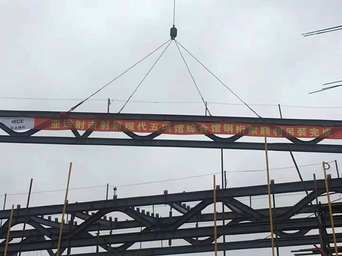 12月25日,從浙江富陽亞運射擊射箭現代五項館安裝現場傳來喜訊,其中一個主體綜合館順利封頂。