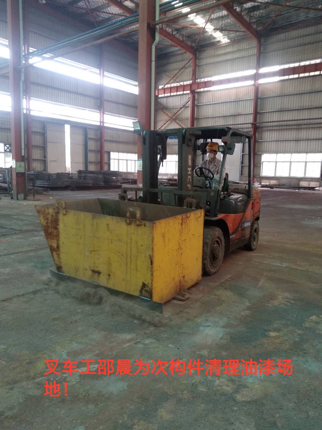 叉車工邵晨為油漆班“打掃衛(wèi)生”
